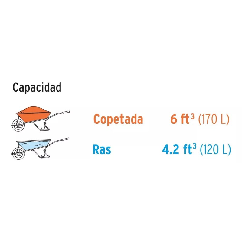 La Carretilla Truper CAT-60PL de 6 ft3, cuenta con una bandeja plástica y una llanta neumática reforzada. Esta carretilla con concha posee una llanta imponchable de poliuretano. La concha plástica tiene un espesor de 3.9 mm y el bastidor tubular tiene un calibre de 16 (1.5 mm). Los soportes de uso pesado proporcionan una mayor estabilidad en cualquier tipo de superficie. Además, cuenta con un rin de 3 aspas y un tacón estabilizador. La capacidad de la carretilla es de 6 ft3 (120 l), las medidas de la concha son 25" (64 cm) x 39" (97 cm) x 16" (41 cm), las medidas de la llanta son 4" (10 cm) x 16" (41 cm), y tiene una resistencia de carga de 580 kg. El puente tiene un doble tornillo de calibre 18 (1.2 mm), y el soporte y tacón son de calibre 15 (1.7 mm).