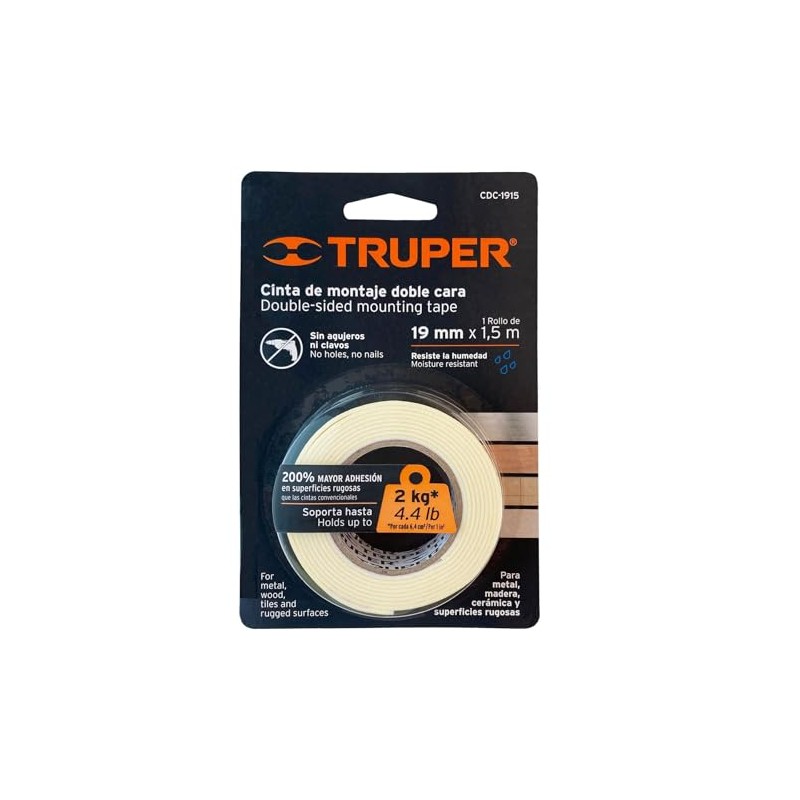 Truper CDC-1915, Cinta doble cara de 19 mm x 1.5 m