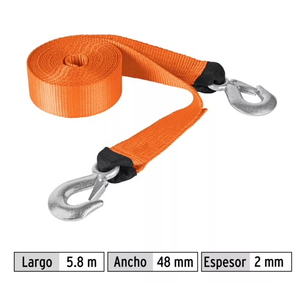 Incluye ganchos en ambos extremos, lo que facilita su uso y asegura un enganche seguro a cualquier vehículo. Con una carga máxima soportada de 2000 kg, esta correa es capaz de manejar la mayoría de las tareas de remolque con facilidad. Su número de parte es TRU18344, lo que garantiza que estás adquiriendo un producto de calidad de la marca Truper.