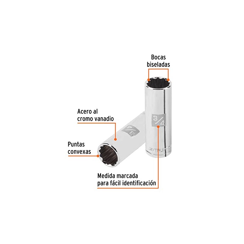 Truper D-1224-EL, Dado largo de 12 puntas std, 3/4", cuadro 1/2"
