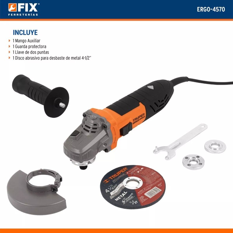Truper Esmeriladora Angular 4-1/2'', Ergo-pro, 750w, Truper 13931 Color Naranja