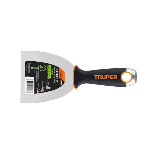 Truper ET-4FX, Espátula flexible de acero inoxidable, mango comfort grip, 4"