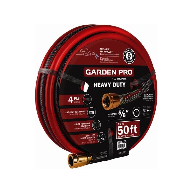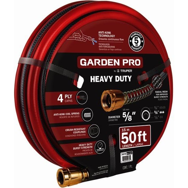 Truper Garden Pro Heavy Duty Garden Hose, 5/8 in diameter, 50 feet, Red