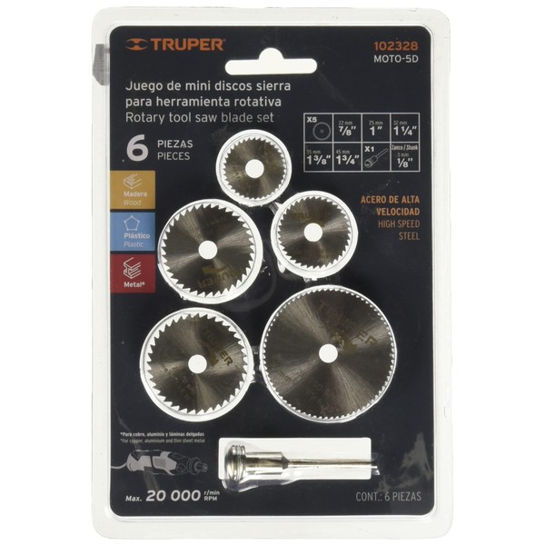 Truper MOTO-5D, Juego de 5 mini discos sierras para mototool