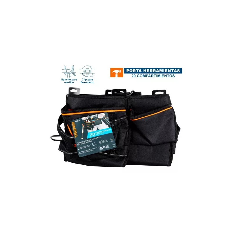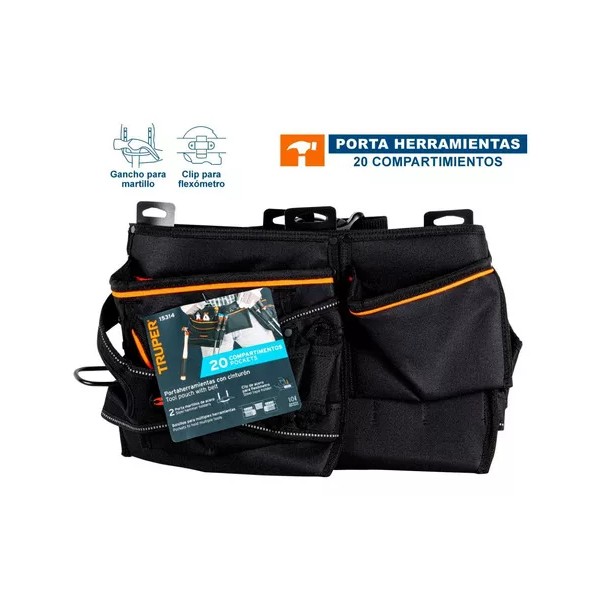 El Porta Herramientas Poliester 20 Compartimentos Truper 15314 es un aliado indispensable para cualquier profesional o entusiasta del bricolaje. Este producto de la reconocida marca Truper, es un modelo POHE-20N que combina funcionalidad y durabilidad en un diseño compacto y resistente.