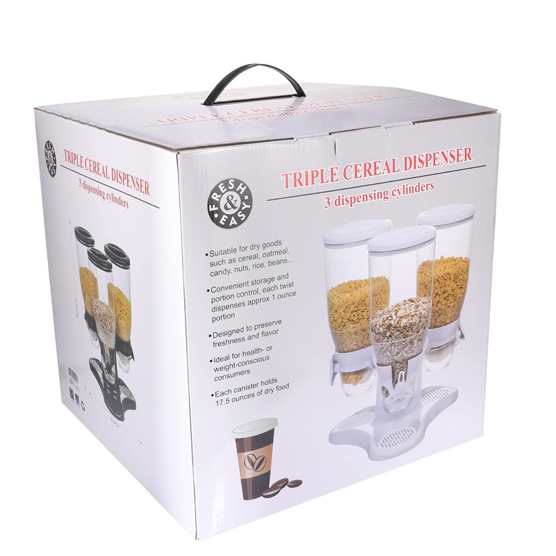 TRUSBER Triple Cereal Dispenser Three Dry Food Dispensing Grains Candy Dstributor with Twist Airtight Cover for Home&Kitchen