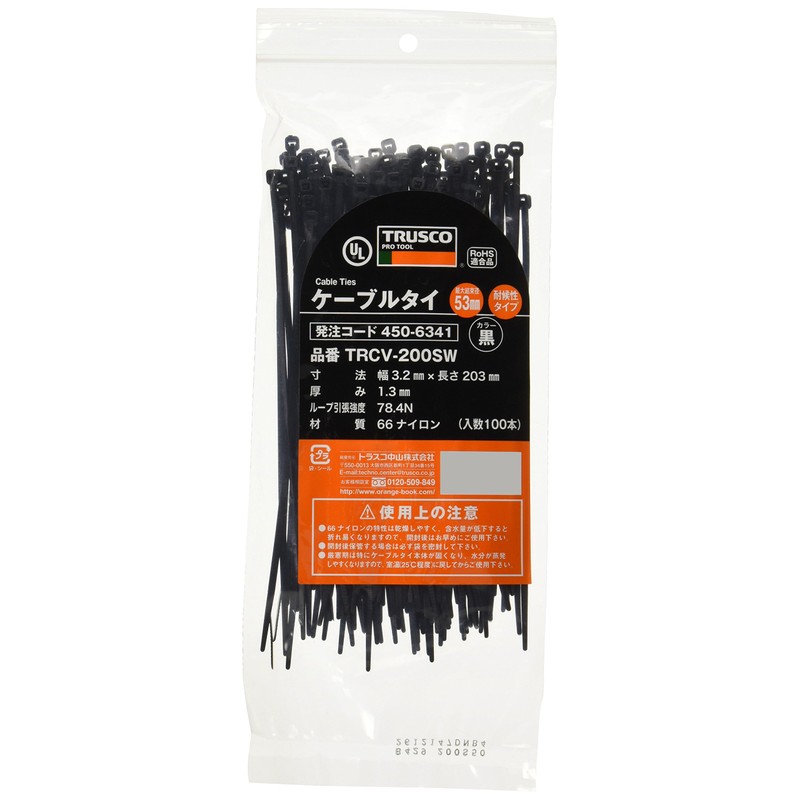 TRUSCO(トラスコ) ケーブルタイ幅3.2mm×203mm最大結束φ53耐侯性 100本 TRCV200SW
