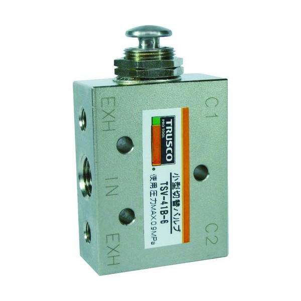 TRUSCO TSV-41B-6 4-Way Small Switching Valve, 5 Ports, 1/8 Button Type