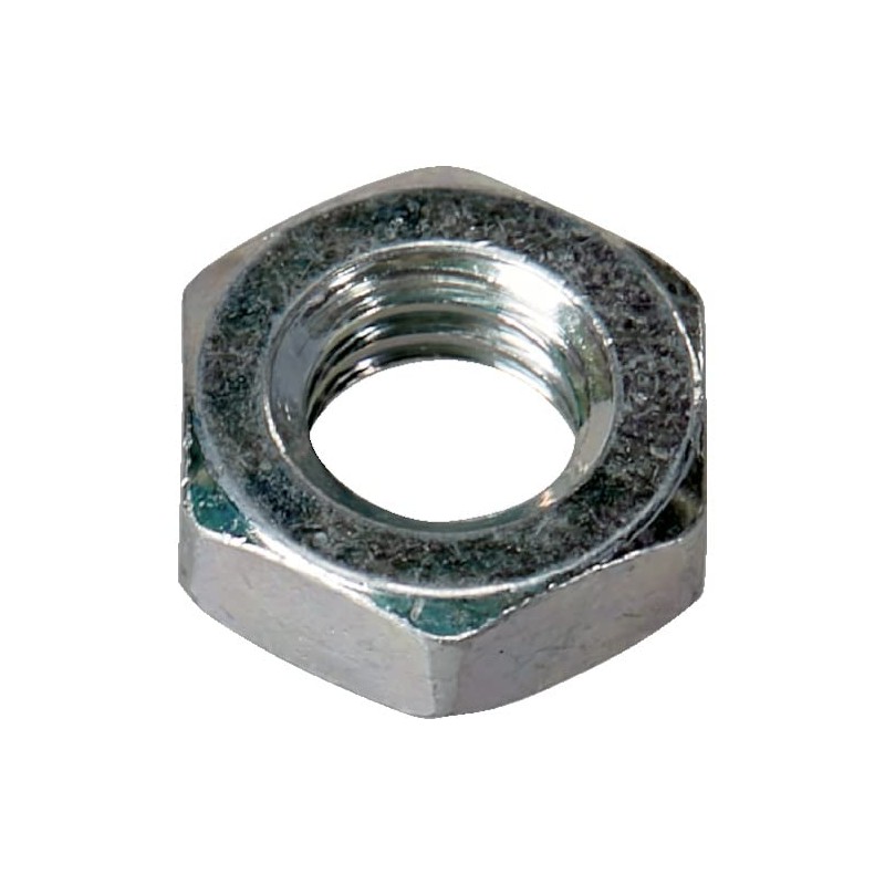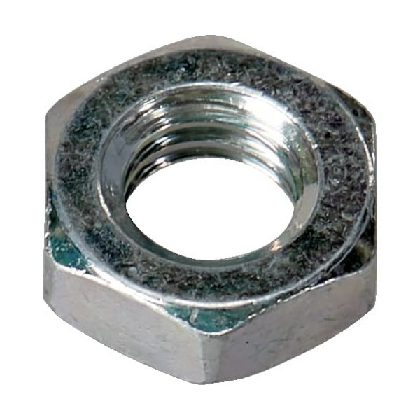 - 3 types of hex nuts (chamfered on both sides, height = approximately 60% of screw diameter); Steel; Surface treatment: trivalent chromate finish (white)