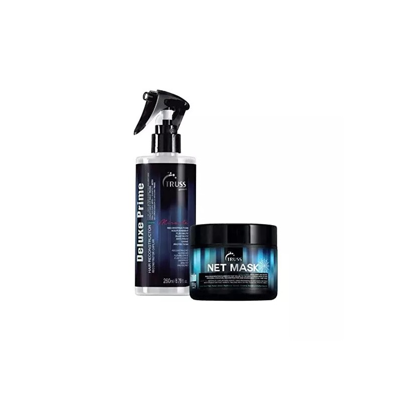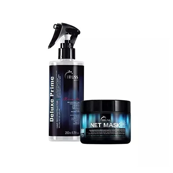 TRUSS Deluxe Prime Miracle Treatment is a highly versatile protein infused spray that restores, and revitalizes even the most fragile, damaged and chemically treated hair. The Truss Professional Net Hair Mask offers the perfect balance of moisture, deep conditioning agents and curl maintaining ingredients, making this hair mask a must-use product for natural curls and permed hair. Features & details BUNDLE INCLUDES: Deluxe Prime Treatment and Net Mask HEAT PROTECTANT SPRAY: Heat damage from blow drying, flat iron damage and curling iron damage is prevented by using this product daily. LEAVE IN CONDITIONING SPRAY: Spray into damp clean hair to protect from heat styling but also to hydrate and nourish hair from the inside out. Use daily on all hair types. REVIVE DRY, COARSE HAIR, DAMAGED CURLS: This advanced formula restores hair health, moisturizes curls and restores damaged curls. Use for any hair type or length. RESTORE MOISTURE BALANCE: Give your curls the proper hydration needed to stop frizzy unmanageable hair. Bring bounce, body and lister to your hair with every use.