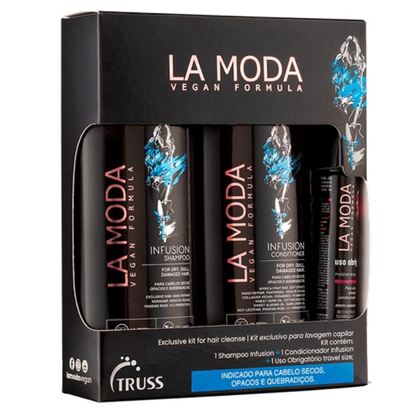 - TRUSS La Moda Infusion Kit - Shampoo, Conditioner, and Deluxe Prime for Dry, Dull, Damaged Hair - 100% Vegan Keratin & Collagen Anti-aging, Hydrates & Restores for Strong, Shiny Hair