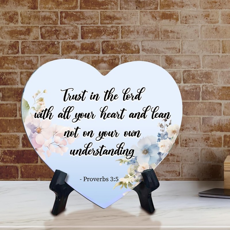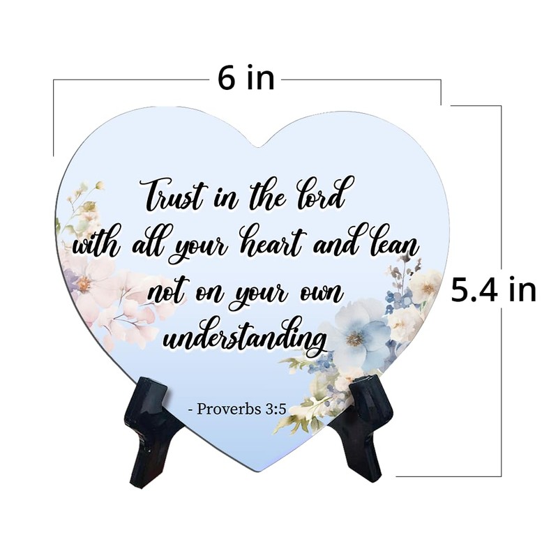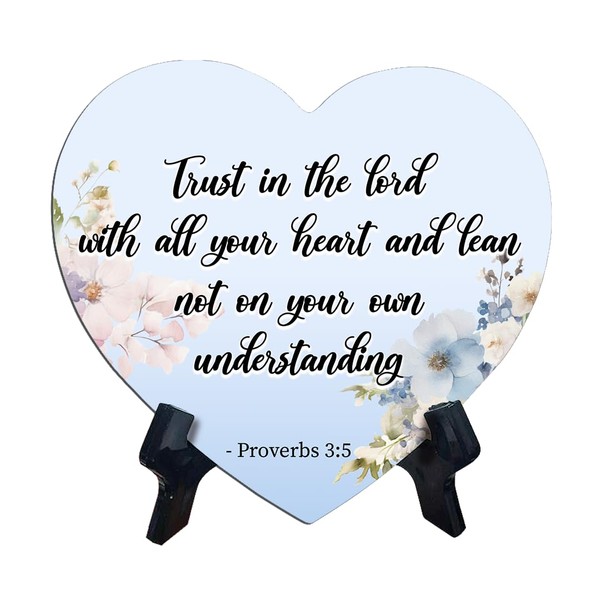 Trust in the Lord with all your heart and lean not on your own understanding - Proverbs 3:5 Heart Table Sign (6 x 5") with Acrylic Stand | Church or Christian Home Bible Verse Decoration
