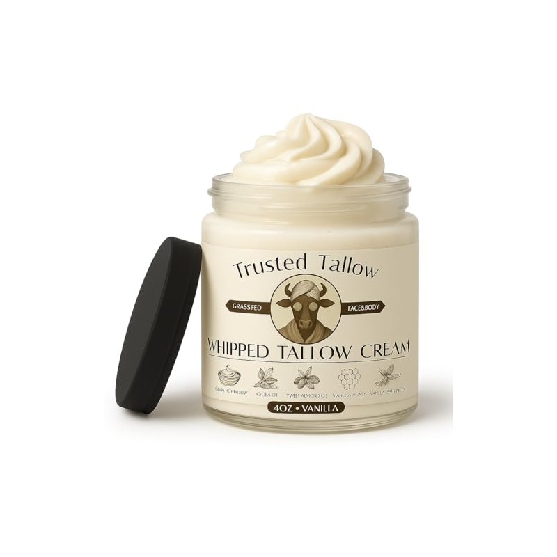 Trusted Tallow Whipped Organic Grass Fed Beef Tallow Cream for Skin - Face & Body - 4 OZ (Vanilla) - All Natural Moisturizer for Sensitive Skin