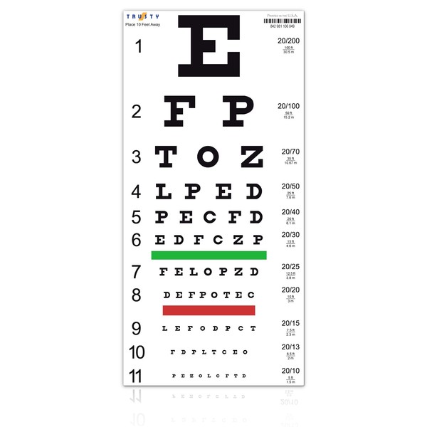 TRUSTY Snellen Eye Chart for Eye Exams at 10 Feet