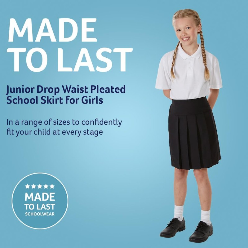 Trutex Junior Drop Waist Pleated School Skirt School Uniform (Age 3 Years, 10.5" Length, Black)