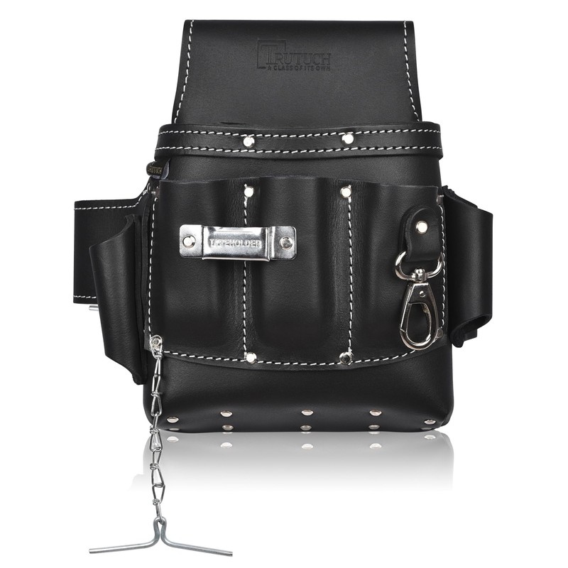 TRUTUCH Grain Leather Electrician Tool Pouch | Carpenter Tool Pouch | Electric Tool Bag | Electrician Bag | Leather Tool Belt (Black)