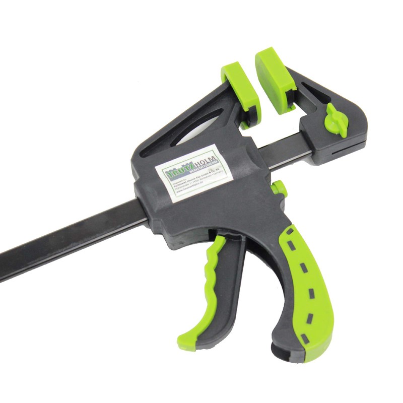 The one-handed clamp is ideal for DIY work and occasional craftsmen, because the clamp can be easily opened and closed with just one hand.