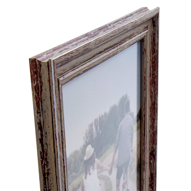 - DESIGN: Weathered, distressed picture frame that will accentuate the surroundings, while beautifully complimenting the photo with a rustic touch