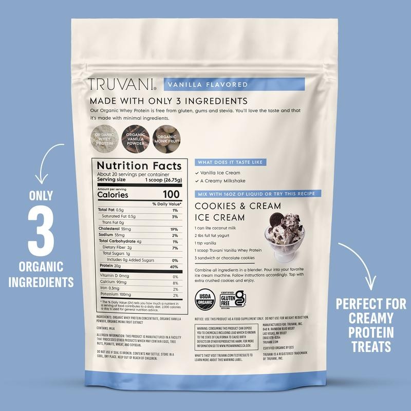 Truvani Organic Whey Protein Powder | 5 Flavors | 20g Grass Fed Whey Protein | 20 Servings | USDA Organic & Non-GMO | Gluten Free | No Gums, No Soy, No Stevia, No Added Sugars:_Chocolate