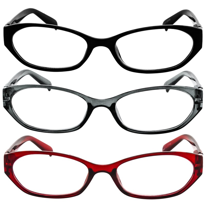 TruVision Readers Reading Glasses – 9502HP- 3 PK – Red Gray Black – 1.00