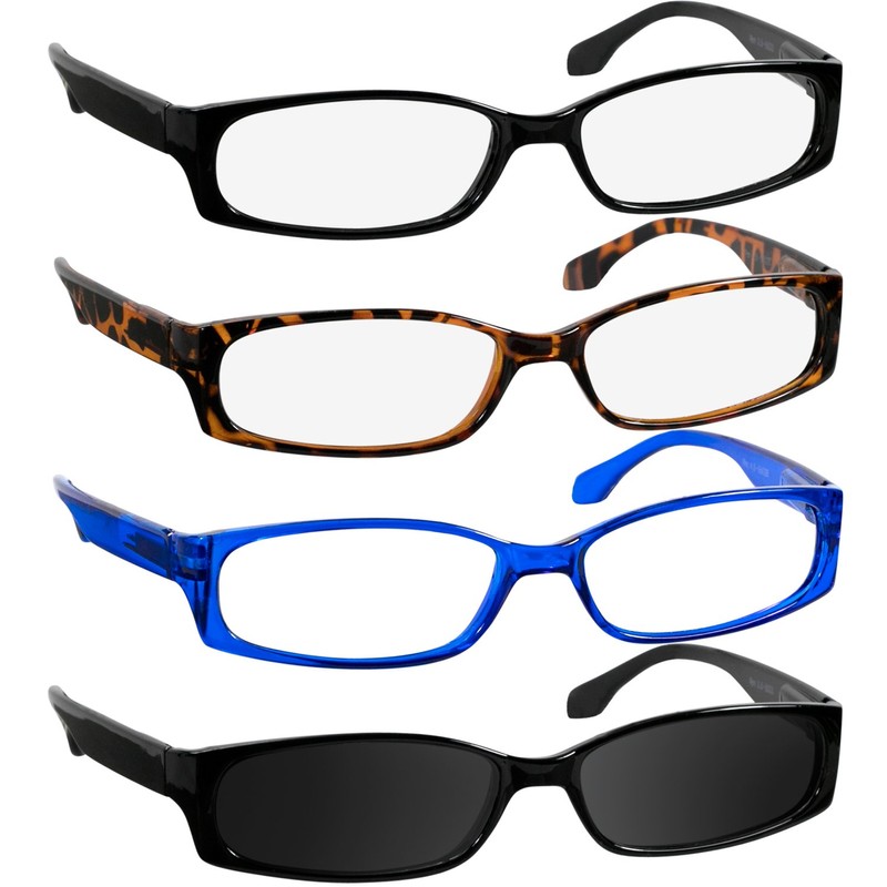 - Full Frame Rectangular Reading Glasses with Comfort Spring Hinges for Men and Women These Multi Color Resin Frames with Crystal Clear or Black Tinted Acrylic Lenses are Lightweight for Comfort and Hours of Wear
