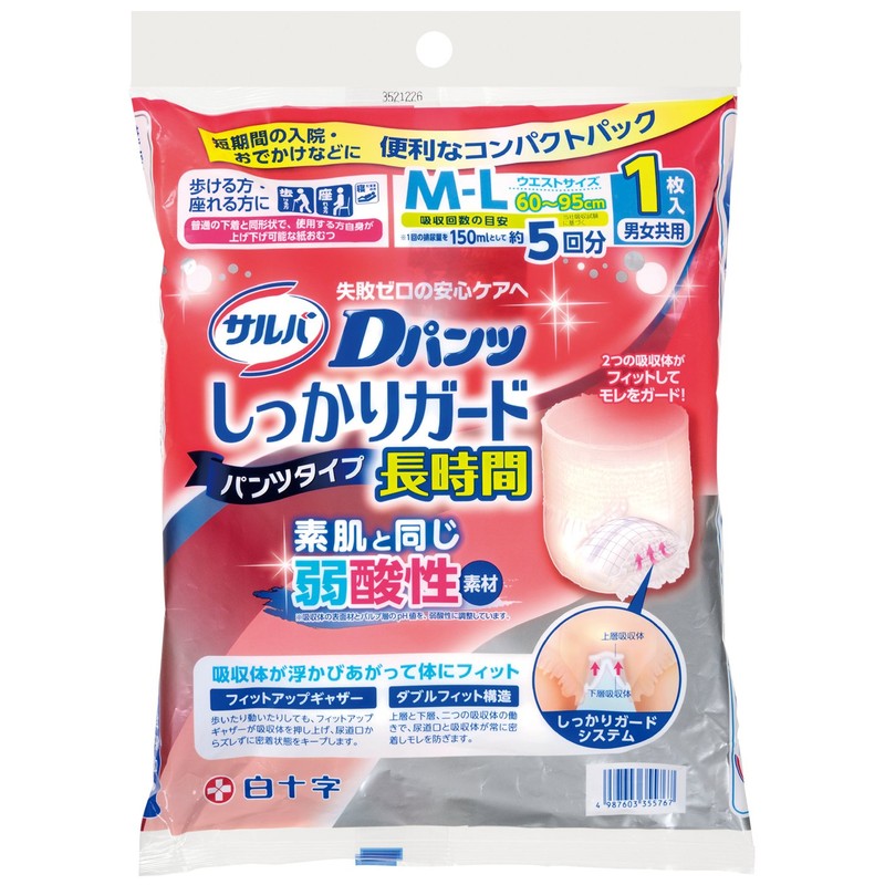 [Try Pack] saruba D PANTS Secure Guard Long, M-L size unisex 1 Pieces [ADL classification: Stand Up, Sit on those who]