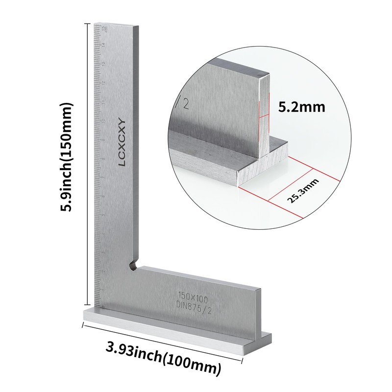 - Sophisticated craftsmanship: the protractor is with 90° right angle vertical design, comes with vertical base, tested by precision instruments with an accuracy of ±0.001 and equipped with accurate scale, so it can also be used as a measuring tool.