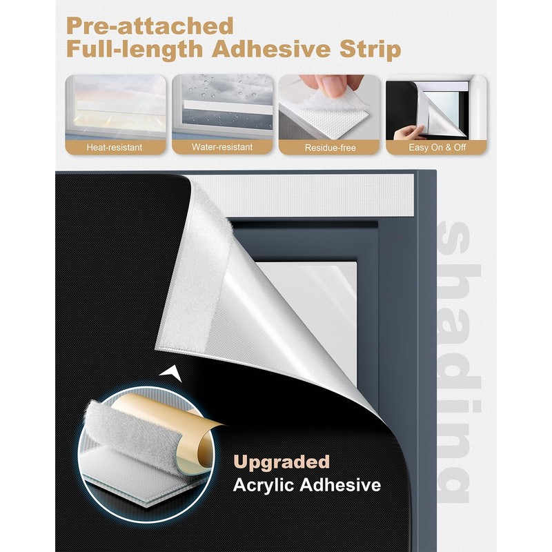 - Effortless Installation: No tools or drilling! Upgraded acrylic adhesive strips make setup quick and easy—just peel, stick, and enjoy instant privacy. For removal, simply detach the hook-and-loop strips, perfect for solo install. Ideal for renters or hassle-free upgrades