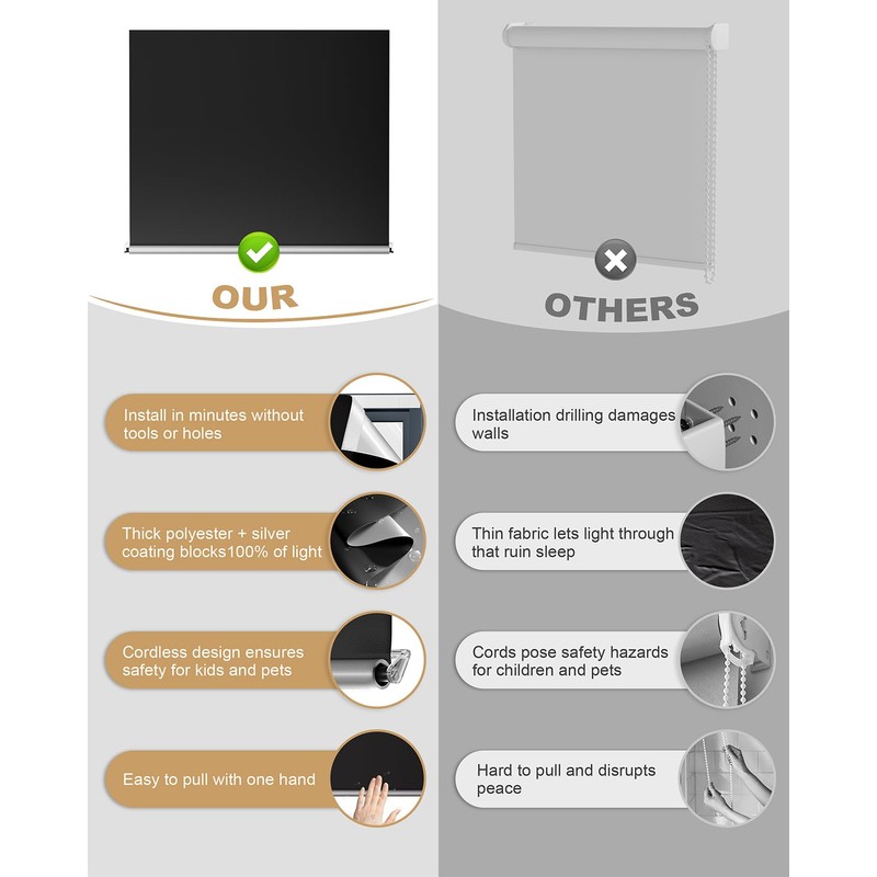 - Cordless Safe Design: Featuring a magnetic buckles and telescoping rod, our blackout window covers allow for smooth and easy adjustment. These roller shades are perfect for creating a clean, clutter-free home while ensuring safety for little ones and pets
