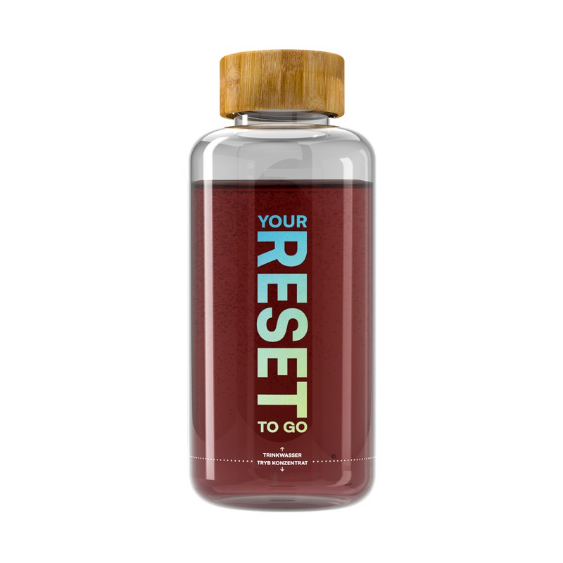- Mix your reset drink: simply pour the TRYB concentrate into the bottle to the dimensions and then fill the rest of the bottle with water. So the drinking bottle fits a total of 1 litre of mixed TRYB drink.