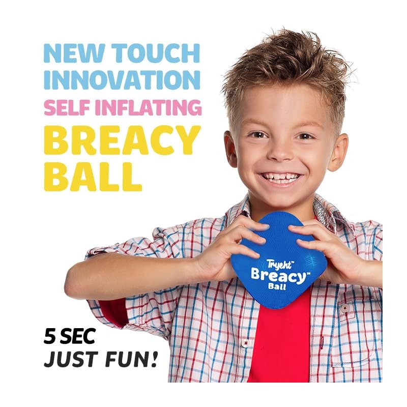 Tryeht Self Inflating Ball 5", Rubber New Feel Breacy Ball, Hi Bouncy, Never Need Pump, Neon Blue, Playground Balls, Handball, Dodgeballs, Picnic and School Play in and Outdoor (6 Pack)