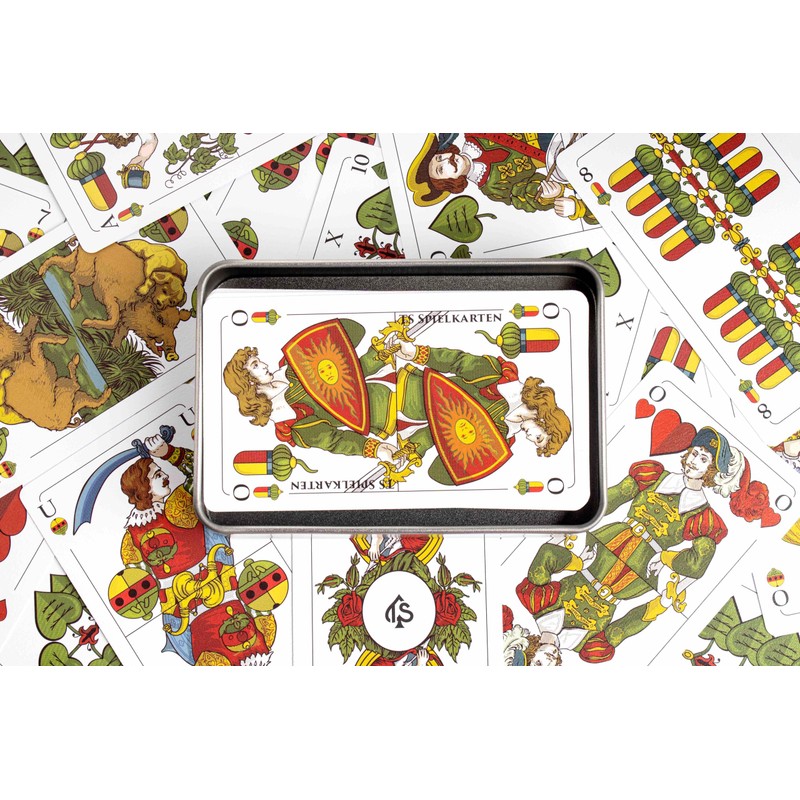 TS Spielkarten Schafkopf Cards Made of 100% Plastic (Plastic +) Bavarian, Waterproof, Quantity Discount Available (Playing Cards + Metal Tin)