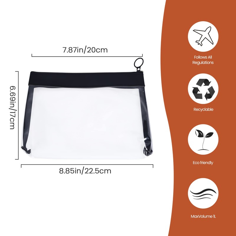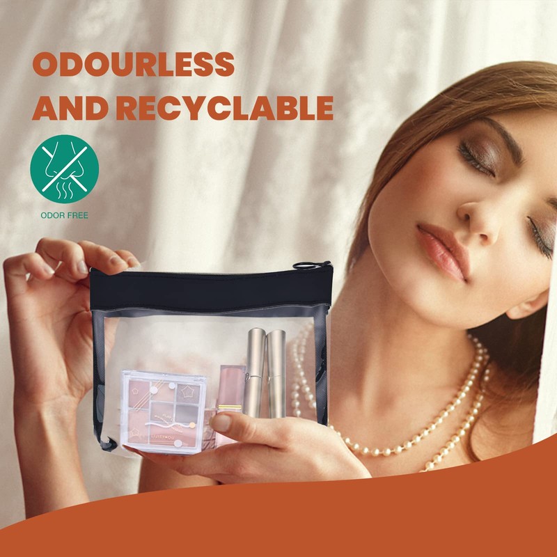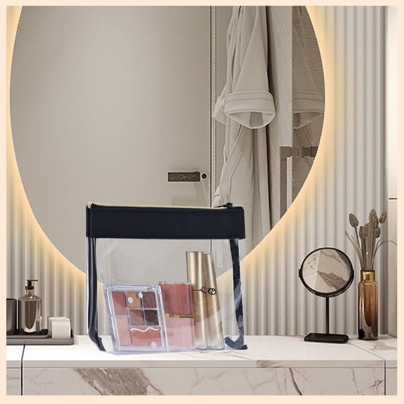 TSA Approved Clear Toiletry Bags, TRIPON 2PC Travel Clear Toiletries Bags Transparent Makeup Cosmetic Pouch TPU Plastic Waterproof Carry-on Quarts Liquid Bag (Black)