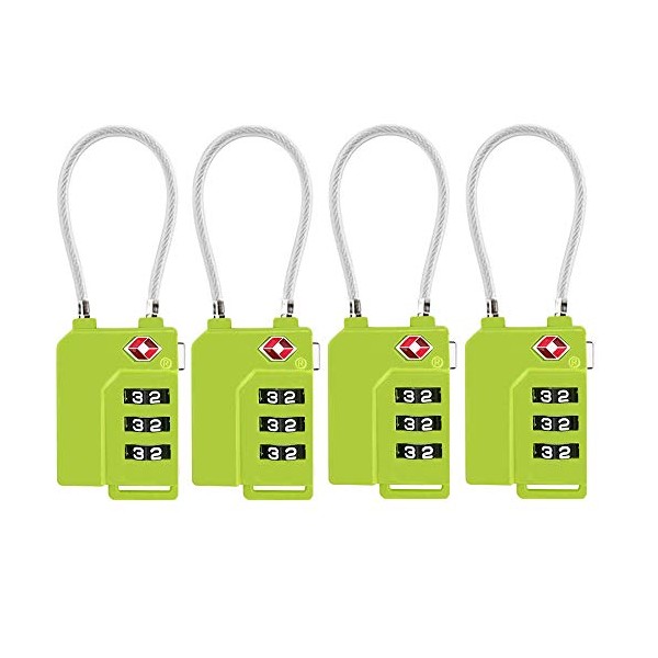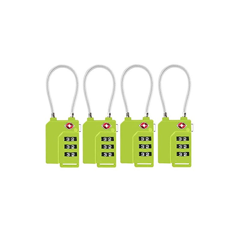 TSA Lock Security 3 Digit Combination Suitcase Luggage Bag Code Lock Padlock (Green-4-Pack)