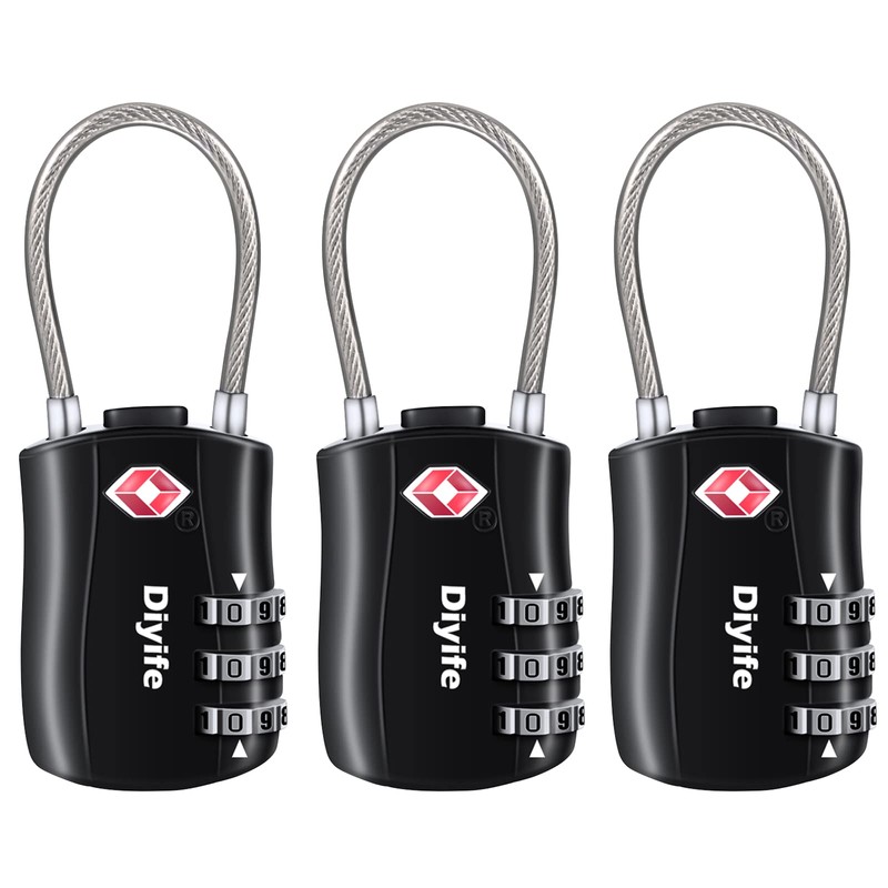 TSA Luggage Locks, [Newest Version][3 Packs]Diyife 3-Digit Security Padlock, Combination Padlocks, Code Lock for Travel Suitcases Luggage Bag Case etc.(Black)