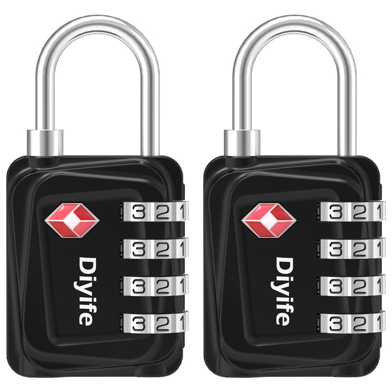 TSA Luggage Locks, [Updated Version] [2 Packs] Diyife 4-Digit Security Padlock, Resettable Zinc Alloy Combination Padlocks, Small Code Lock for Travel Suitcases Luggage Bag Case (Black)