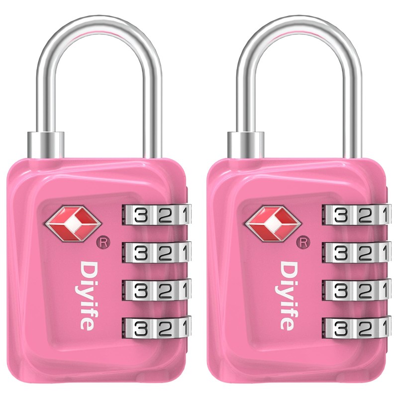 TSA Luggage Locks, [Updated Version] [2 Packs] Diyife 4-Digit Security Padlock, Resettable Zinc Alloy Combination Padlocks, Small Code Lock for Travel Suitcases Luggage Bag Case (Pink)