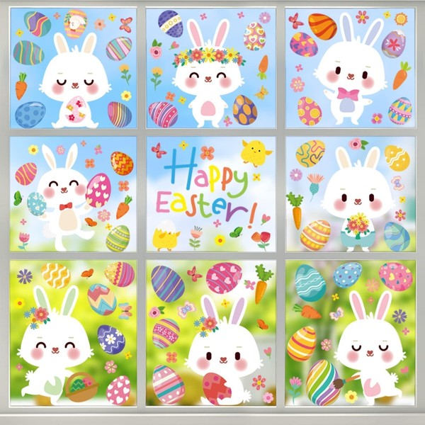 • 🐰 Easter Window Stickers 🐰 Enhance your Easter decor with our set of 130pcs Easter window stickers, conveniently arranged in 9 Sheets. These stickers feature adorable designs such as rabbits, eggs, carrots, egg baskets, flower wreaths, flowers, and butterflies, each in different sizes and shapes, adding beauty and uniqueness to your festive display.
