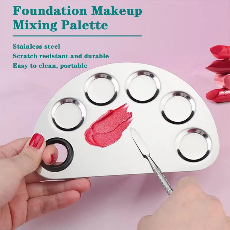 - Package contents: the package contains 1 semi-circular make-up palette, which is fan-shaped with 5 recesses and has approx. 15.6 x 10 cm (L x W), double-sided 16 cm spatula.