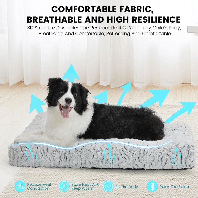 TSEB4TEP Dog Bed,Orthopedic Foam Plush Dog Bed for Crate Fulffy Comfy Kennel Pad Anti-Slip,36" Dog Bed Sofa Pet Bed for Large,Medium,Small Dogs Breeds,36" x 24",L,Gray