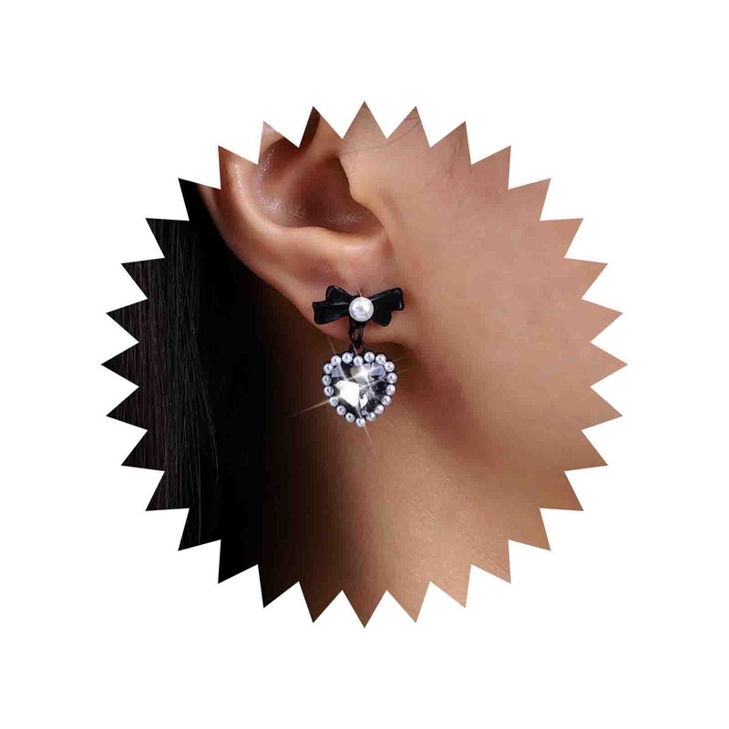 TseenYi Black Bow Heart Earrings Black Crystal Heart Earrings Dangle Small Bow Stud Earrings Pearl Black Heart Earrings Tiny Pearl Bowknot Earrings Jewellery for Women and Girls, Crystal