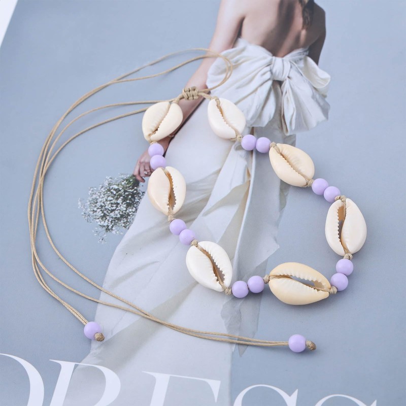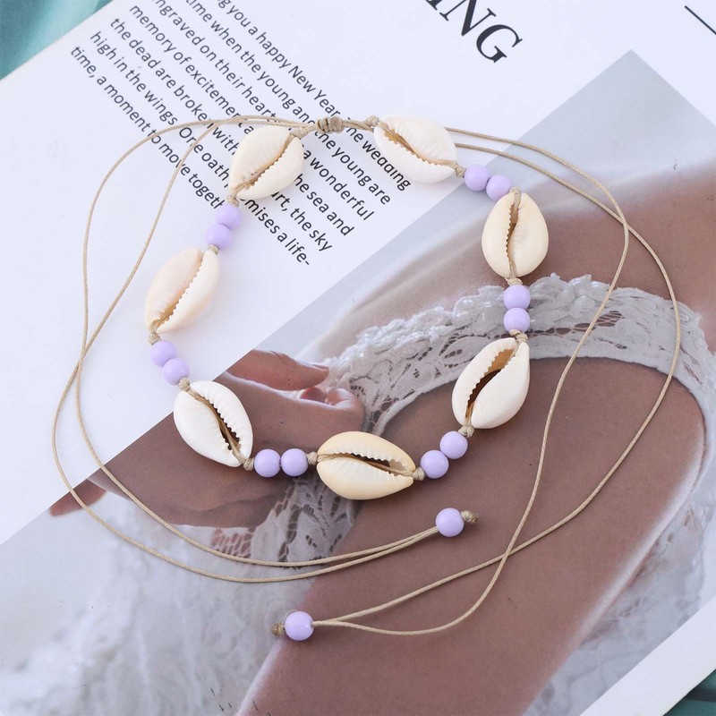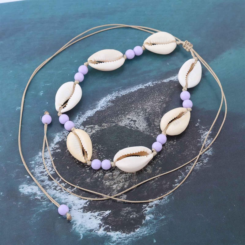 TseenYi Boho Cowrie Shell Choker Neckalce Seashell Necklace Purple Tiny Bead Beadeds Chain Necklace Seashell Strand Necklace Summer Beach Rope Necklace Jewelry for Women and Girls