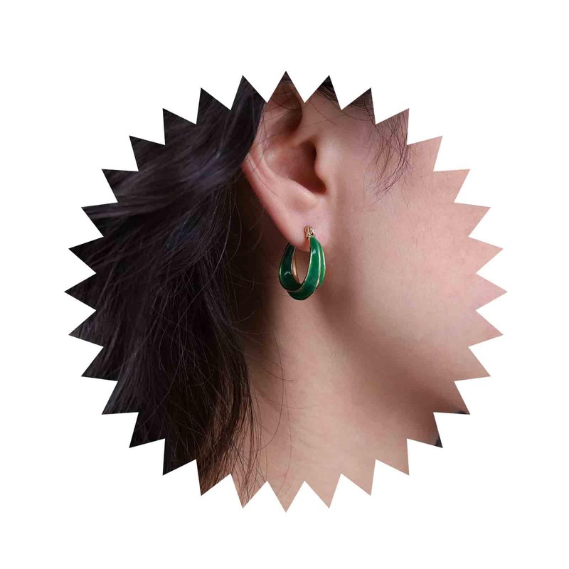 - Green enamel U shape earrings.Product Details:Handmade.Dimensions:as shown in the picture.Color:Green.Material:high quality alloy.Location:Ear.Style:Boho.There will be slight errors due to manual measurement.Due to the shooting environment,there will be slight color difference.
