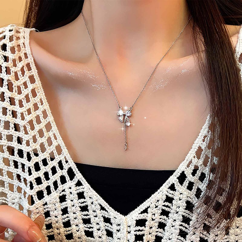 - Cz bowknot chain necklace.Gift Occasion:The Simple Elegance and Intricate Detailing, Combine Effortlessly Together to Suit any Style, From Casual to High Chic.Suitable for any Occasion, Such as Beaches, Event Parties, Dance Parties, Dates, Daily Collocations,Banquet,Weddings, etc.