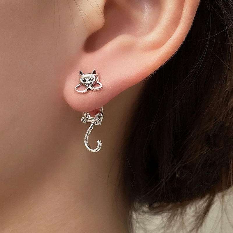 • Silver cat coat earrings.Product Details:Handmade.Dimensions:as shown in the picture.Color:Silver.Material: High quality alloy.Location:Ear.Style:Boho/Vintage.There are slight errors due to manual measurement.Due to the shooting environment, there may be slight color differences..