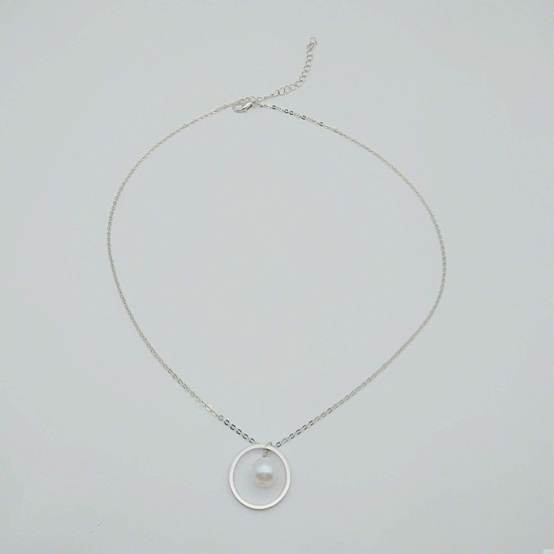 TseenYi Circle Pearl Necklace Chain Tiny Pearl Pendant Necklace Karma Eternity Chain Necklaces Jewelry for women and Girls (Silver)