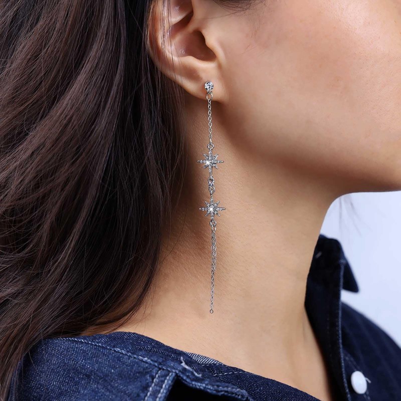 • Cz northstar drop earrings.Item details:Handmade item.Size:As pictured.Color:Silver.Materials:High quality alloy.Location:Ear.Style:Boho.There are slight errors due to manual measurement.