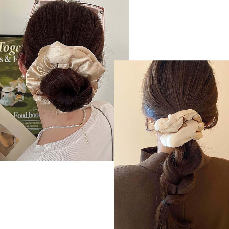 - Oversized satin scrunchies.Item Details:Handmade Item.Size:As Shown.Color:Off-white.Materials:Ordinary Fabric.Style:Boho/Vintage.There will be slight errors due to manual measurement.Due to the shooting environment,there will be slight color difference