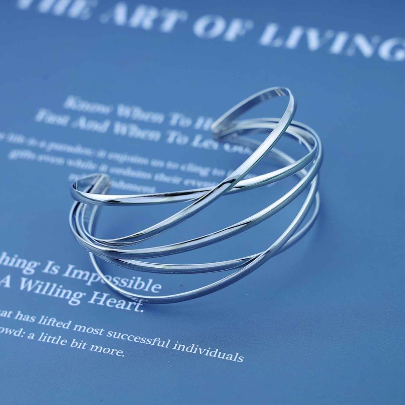 TseenYi Layered Twisted Open Cuff Bangle Hollow Open Cross Wire Bangle Bracelet Silver Cuff Bangle Stackable Bracelet Vintage Cross Wire Bracelet Jewelry for Women and Girls