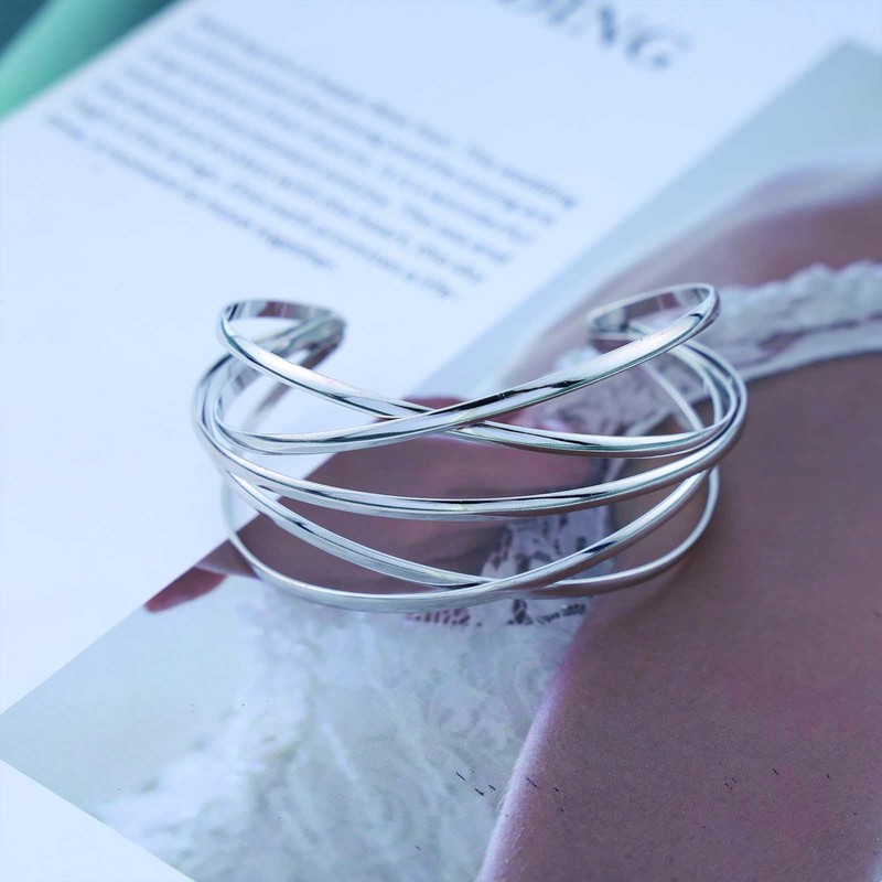 - Silver wide bangle bracelet.Gift Occasion:The Simple Elegance and Intricate Detailing, Combine Effortlessly Together to Suit any Style, From Casual to High Chic.Suitable for any Occasion, Such as Beaches, Event Parties, Dance Parties, Dates, Daily Collocations,Banquet,Weddings, etc.